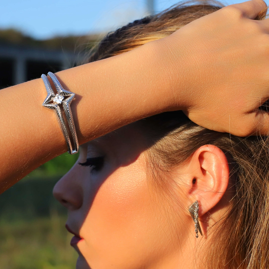 925 Sterling Silver Satellite with Diamonds Felicity Bracelet with Picture Inside